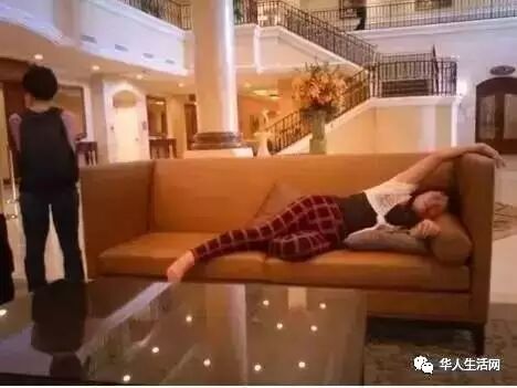 洛杉矶华裔女士爆料,她在San Gabriel一家高档酒店见到了令人啼笑皆非的一幕。一名华人女游客大白天在酒店大堂沙发上躺倒呼呼大睡,且睡姿豪放!