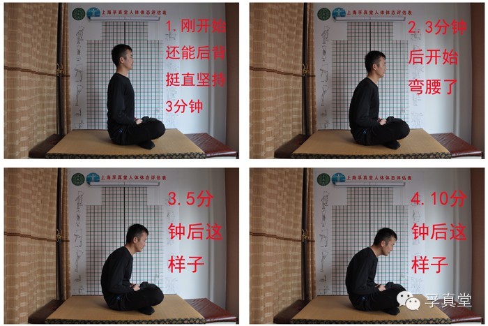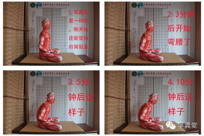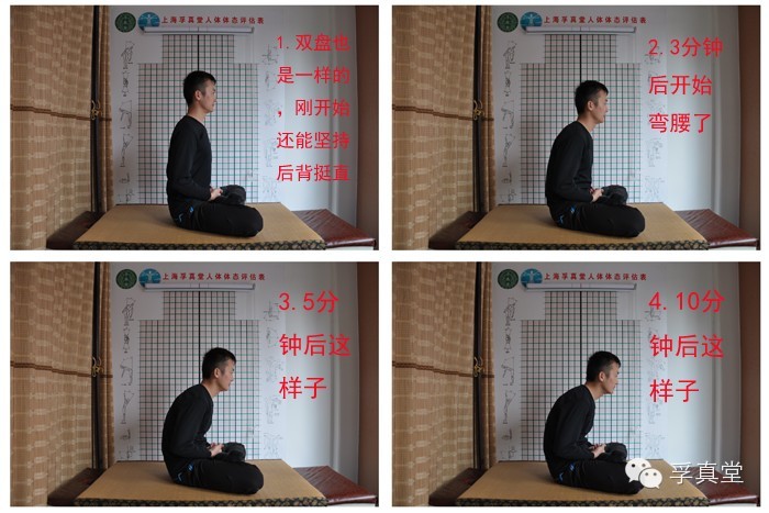 那么我即便是双盘,那么还是会坐着坐着就把上半身弯下去了,即使我很用力的把背挺直但是总会有坚持不下去的时候,因为用不了一小会,我的腰背和膝盖就疼痛起来了,不得不把腰弯下去了。