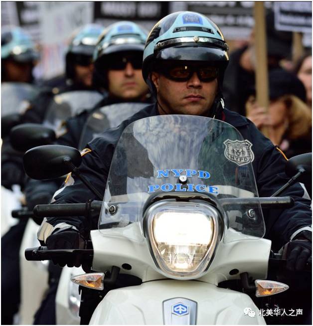 但是纽约警察却是全副武装在一旁严密监控事态发展。