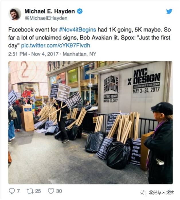 能花两万四千在在纽约时报做广告的组织者,自然不缺那几个做标语牌的钱。可是,到场的群众并没有那么多,于是这些整齐划一的标语牌就尴尬了。组织者不得不在现场打气,说,这只是第一天。