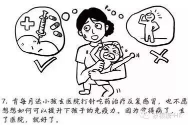 肯每月送小孩去醫院打針吃藥治療反復感冒,也不願想想如何可以提升下孩子的免疫力,因為覺得病了,去了醫院,就好了。