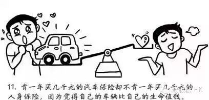 肯一年買幾千元的汽車保險卻不肯一年買幾千元的人身保險,因為覺得自己的車輛比自己的生命值錢!