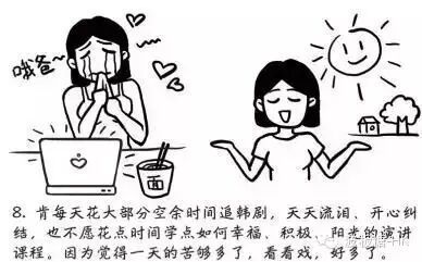 肯每天花大部分空余時間追韓劇,天天流淚,開心糾結,也不願花點時間學習如何幸福、積極、陽光的演講課程。因為覺得一天的苦夠多了,看看戲,好多了~