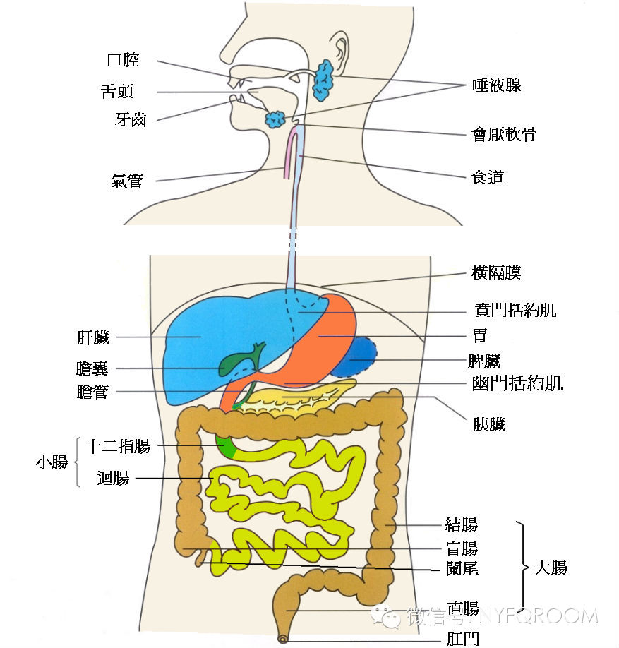人体消化系统最重要的器官是构成大肠的结肠和直肠(连接结肠和肛门的部位)。食物被吞服后,消化过程就开始了,食物从食道进入胃。小肠负责吸收食物中的营养,并把营养传送到血液中。食物中和由环境污染产生的毒素也会出现在体液中,在这些毒素到达身体重要器官之前肝脏会把它们过滤掉。一旦食物被充分消化后,就会进入6英尺长的大肠前端(结肠)。结肠将食物残留物中多余的水分吸干,剩下的废物(大便)从大肠的末端10英寸部分(直肠) 排出体外。