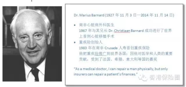 我来自南非,我是一名心脏外科医生,我从事医生这个职业已经超过50年了;我还曾担任过南非国会众议院议员长达9年时间;后来,我从1983年起开始从事重大疾病保险业务,到现在也已经有22年了。