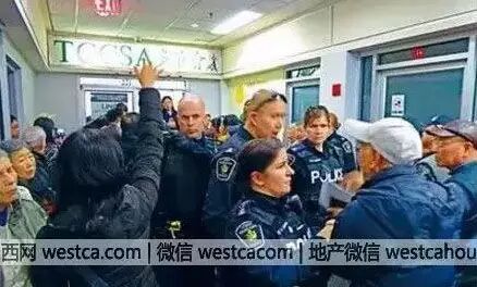 加国离休干部争领中国养老金, 场面失控,加警方吓傻,强行驱散