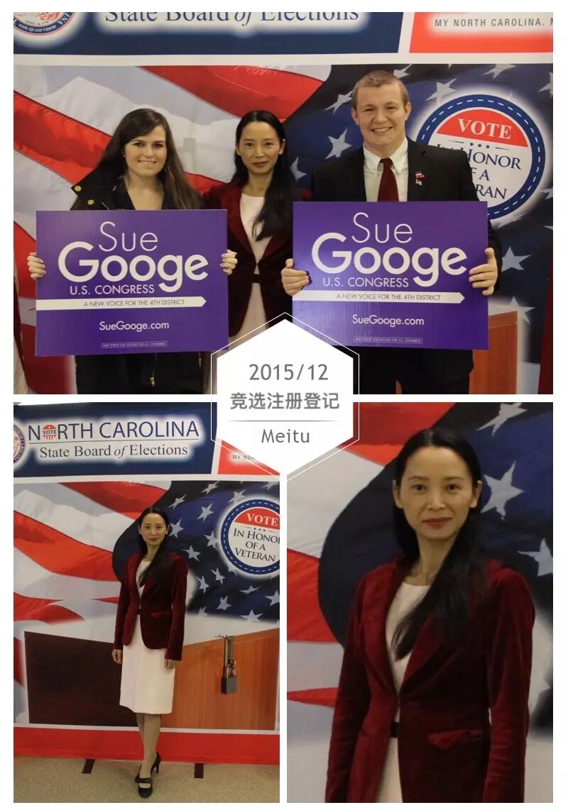2015年11月19日正式宣布竞选国会议员,得到共和党学生会UNC和DUKE主席的支持,在母校UNC校园,江秀曾经读研究生课程上课的大楼前举行新闻发布会。图中有UNC 和 duke大学共和党的主席,美国自由青年会的州主席,UNC共和党的竞选经理等杰出青年政治才俊,他们都是铁杆支持者。
