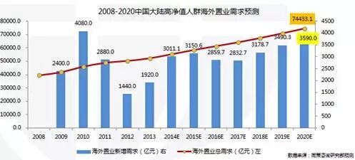 未来,随着美国退出量化宽松以及经济不断复苏,美元在不久的未来将依旧保持强势的国际货币地位,加大海外资产配置比例如股票、债券、房地产,或者收益稳定的外汇理财产品,均不失为一项明智之举。预计中国大陆高净值人群的海外置业需求每年将新增3000亿元左右,到2020年,将达到74433亿元。作为成熟财富管理市场上不可或缺的一部分,海外资产管理将成为未来财富管理行业发展的必然趋势,不趁早下手,更待何时?