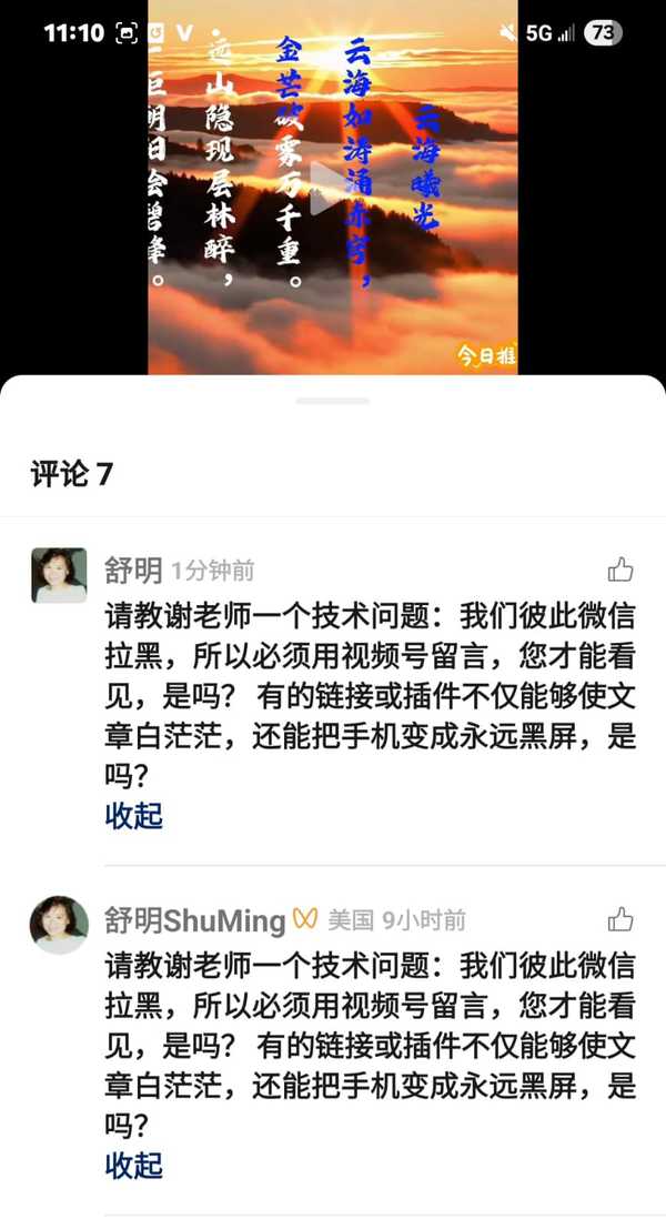 舒明不再对任何人问问题,专注结束20251125*洛杉矶天文台看人文之后,第一次看见谢建春ai生成的黑衣合十肃穆男子签名,本意告别云端互动的舒明 n+1次地继续了观看作品留言删除又补回留言,终于停止在20251125🔺️