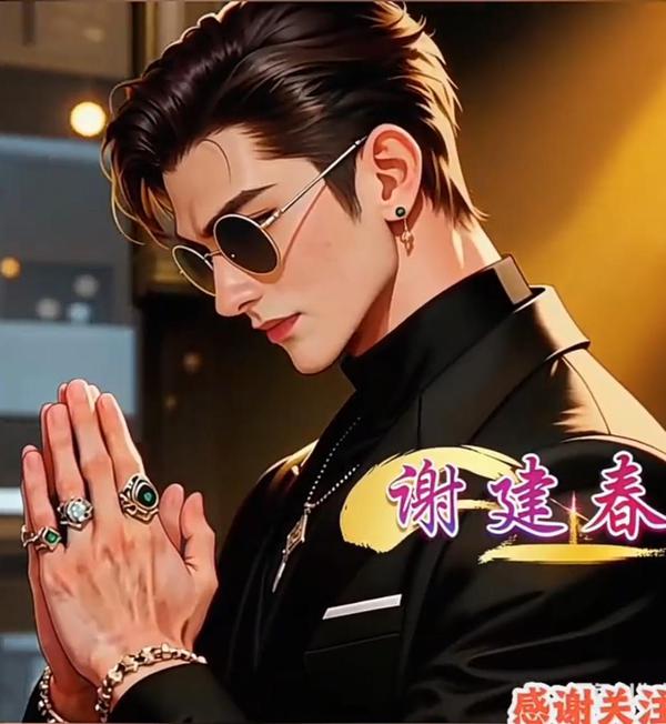 2. **第一次看见谢建春AI生成的黑衣合十肃穆男子签名**