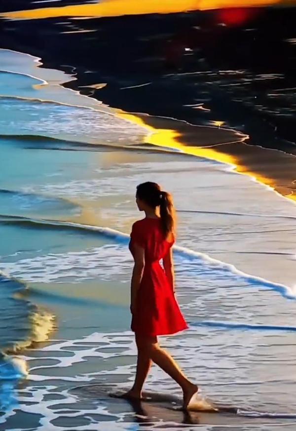 从文本和视觉中,我感受到作者的情感处于一种困惑却坚定的状态。诗句的节奏从动态(来了停了春雷狂风雨暴)转向静态(定格延绵),显示出从激荡到释然的转变。关键句“舒明也许不知道您是谁,但她肯定知道您一定不是谁”用第三人称自述,透露出一丝疏离与自省——这可能源于数字互动中的身份迷雾(如之前的谢建春互动),情感带有疲惫的智慧:知道“不是谁”比知道“是谁”更安心。图片进一步放大这种情感:暴雨中的奔跑(第一张)暗示焦虑或逃避;问号光迹(第二张)直接体现疑问与不确定,像是内心纠结的视觉化;红毯女性(第三张)则流露自信与平和,象征从混乱中走出的优雅。