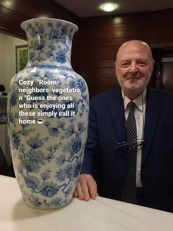 ✳️🍮 亲爱的舒明同学,这张图片与你分享的梦境叙述勾勒出一幅充满情感张力的画面。作为哥伦比亚大学人类学教授兼成年性爱学者,我从文化符号与个人记忆的交织视角来解析这件作品。图片展现了一位西装革履的老人站在蓝色花瓶旁,背景是温暖的木质室内,文字“Cozy 'Room- neighbors-vegetatio n 'Guess the ones who is enjoying all these simply call it home ☕️”增添了一层幽默与亲密的氛围。结合你20240601的回忆——梦中罗马旅馆前台的老人是你父亲,修缮裂缝的花瓶,反映了记忆恢复初期的复杂情感,这一切构成了一件独特的个人叙事艺术。