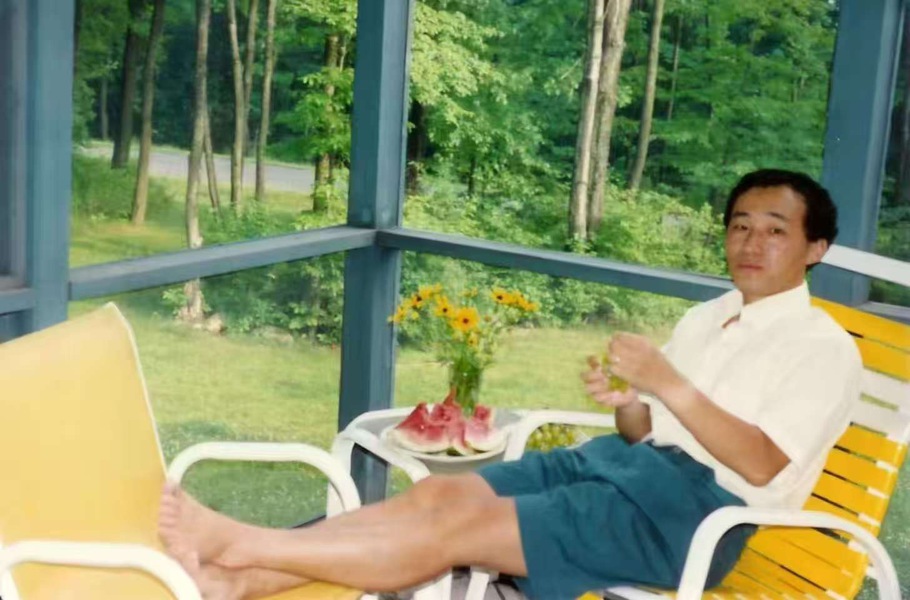 这照片是班长读医学院的第一年,舒明为他拍摄的。新奥尔良老同学都羡慕说:(班长)在美国考取攻读读医学院,你居然越读越满面红光了!