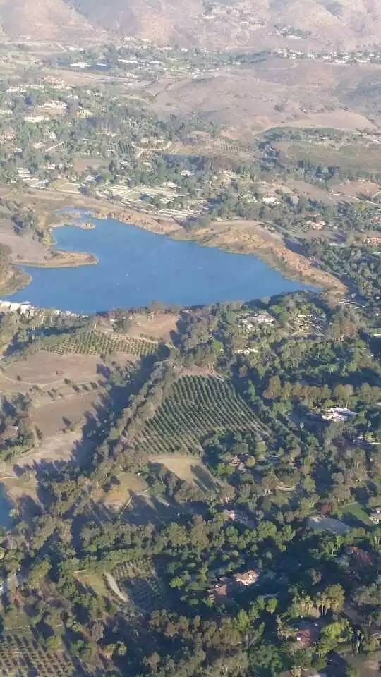 承坐热气球, 在6000英尺上的空中, 腑譀南加的山峦水库, 海岸湖滨,葡萄园, 跑马场, 私人居宅~~