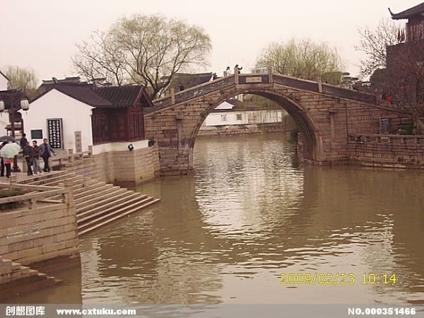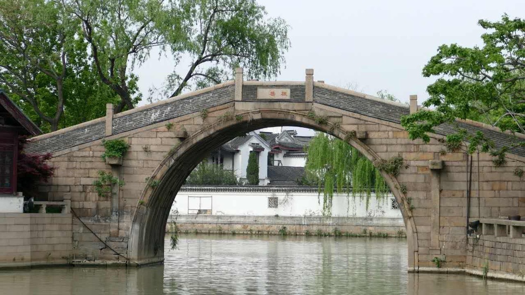 这答案我是在来到实地之后才找到的。这座桥叫“江村桥”,座落在寒山寺的院外,与寺院仅一墙之隔。一走出寒��寺我就开始寻找“枫桥”,但很自然,映入眼帘的却是这座“江村桥”。我十分诧异。“江村桥”?哪儿来的“江村桥”?我从没听说过。难道“枫桥”已经沦为尘埃不复存在了?