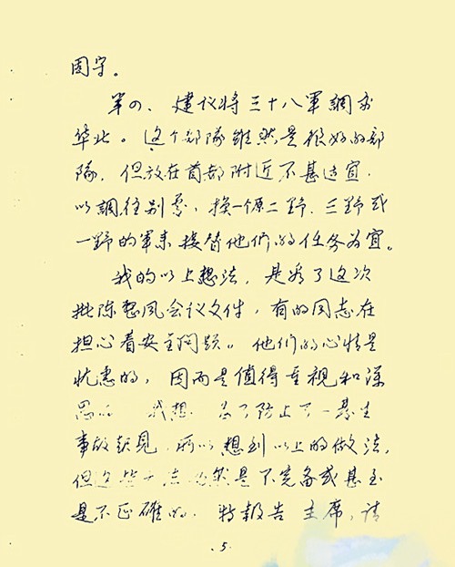 第四,建议将三十八军调离华北。这个部队虽然是很好的部队,但放在首都附近不甚适宜,以调往别处,换一个原二野、三野或一野的军来,接替他们的任务为宜。