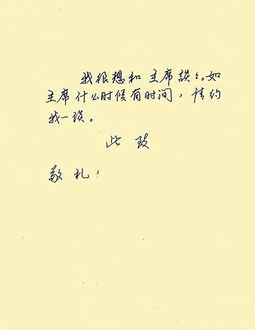 我很想和主席谈谈。如主席什么时候有时间,请约我一谈。