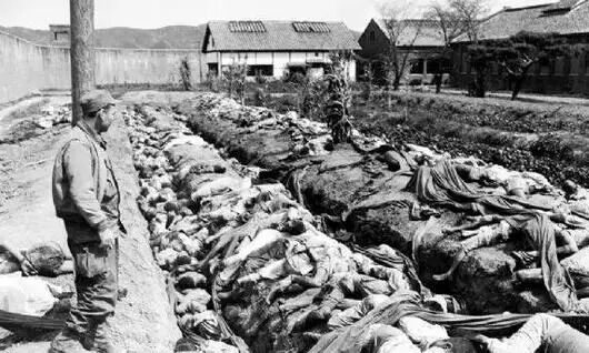 美国为何会投入这么高昂的战争成本,因为联合国得到下面南韩平民被 北韩成批屠杀的照片。仔细看,很多尸体的双手是被绑住的。这也是苏联代表,在联合国投票表决出兵时,借故离场的原因之一。