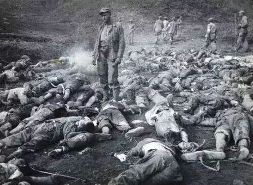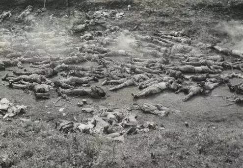 注意左下角那个大家熟悉的中国军用水壶。这是尸体群的一角。