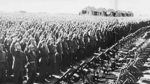 在现代战争机器绞杀下,2人能活捉对方8人,几乎就是心理上恐惧成功,而不仅仅是战术上的勇猛造成的。注意脑袋最大的投降兵,步枪就在他举起的右手边。