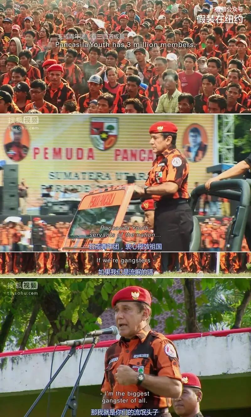 纪录片里有一段团长雅培托·苏洛苏马诺(Yapto Soerjosoemarno)的训话,他说,“所有五戒青年团成员都是英雄,铲除共产分子不仅是军队和警察的责任,我们五戒青年团也要承担起这个使命……有人说我们是流氓,如果是流氓的话,那我就是你们的流氓头子。”