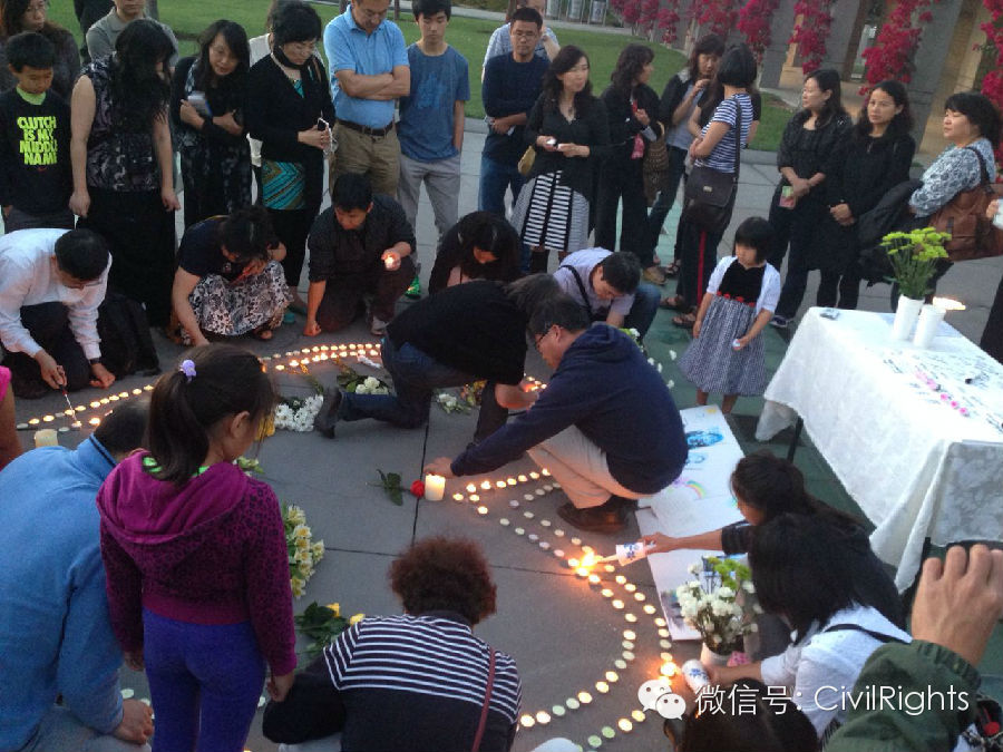 6月1日晚8点,在Cupertino图书馆门前,来自湾区的各位华人朋友出席了烛光追思会,以悼念在5月23日校园惨案中不幸遇难的学生。