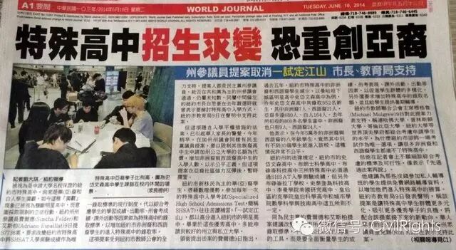纽约州议会试图改革纽约特殊高中的录取标准的法案一直是纽约各界非常关心的议题,褒贬不一。由于目前有大量亚裔的孩子就读于纽约特殊高中,该法案也引起了华人社区的极大的关注。今年年初加州华人强烈反对加州州议会试图通过的SCA5宪法修正案,使得其它地区的华人更为关注本地区学校录取等一系列事关华人的教育和政治参与议题。不少人还把纽约州的这两个法案称为“东岸版本的SCA5”。