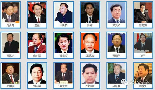 副部级31人:陈铁新、武长顺、韩先聪、谭力、万庆良、令政策、杜善学、赵智勇、阳宝华、谭栖伟、毛小兵、宋林、姚木根、沈培平、金道铭、祝作利、冀文林、杨刚、童名谦、陈安众、许杰、郭有明、陈柏槐、廖少华、季建业、李华林、王永春、李达球、郭永祥、倪发科、刘铁男(这40人的具体涉案金额,等结果出来,会马上公布给大家,敬请期待...)