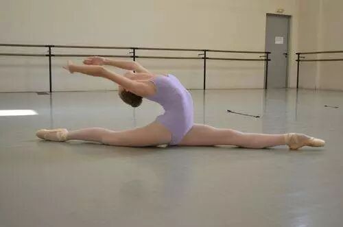 注意后面的腿要伸直、外开!前腿要伸直绷脚背!肚皮贴前腿,抻直腰向后弯。如果有人帮你踩髋关节,那么后腿的功夫会迅速大幅增长!!再帮你搬胳膊,那你站着搬后腿的问题将在几个月后得到解决啦!