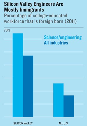 图为2013年硅谷发布的数据:硅谷的工程师们大多是移民