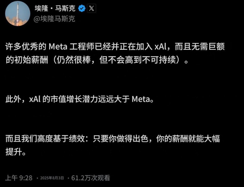 目前,馬斯克顯然在這場比賽中領先。他的 xAI 正在以驚人的速度吸納全球頂尖人才,而短時間內,Meta 似乎難以扭轉局勢。