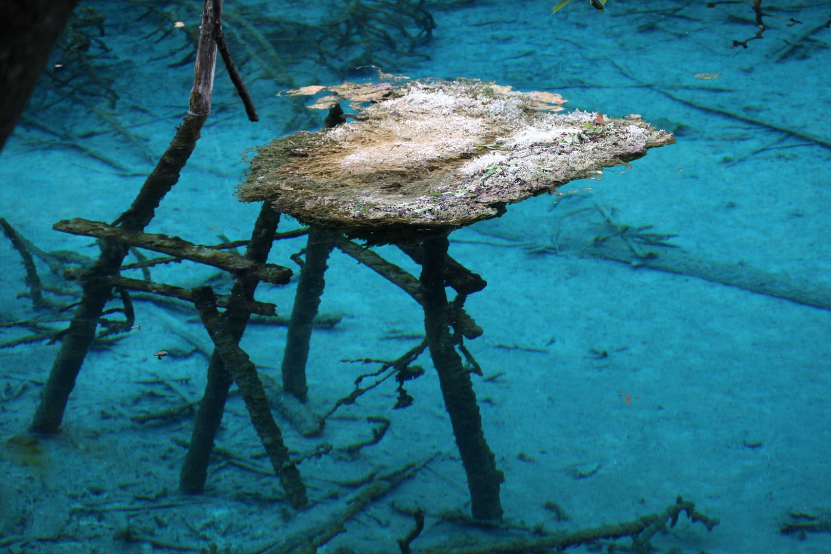 五花海化腐朽为神奇,把一段水中枯树幻影成栩栩如生令人称绝的鳄鱼头。