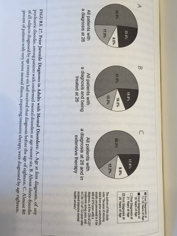 3. 青少年是人生很独特的一段时期,有些精神问题开始显露,但是,很奇特的是,有些精神疾病却需要成熟的大脑来表现症状。精神分裂症(schizophrenia)就是其中的代表。这种疾病是需要非正常的额叶的控制来达到的,而儿童和早期青少年发育不完全的额叶正好阻止了这种疾病的发生。因此,精神分裂症是在十七八岁到二十五岁甚至三十多岁才开始出现病理症状的。但是,青少年期的忧郁症(depression)或躁郁症(bipolar disorder)也可能是其前奏。