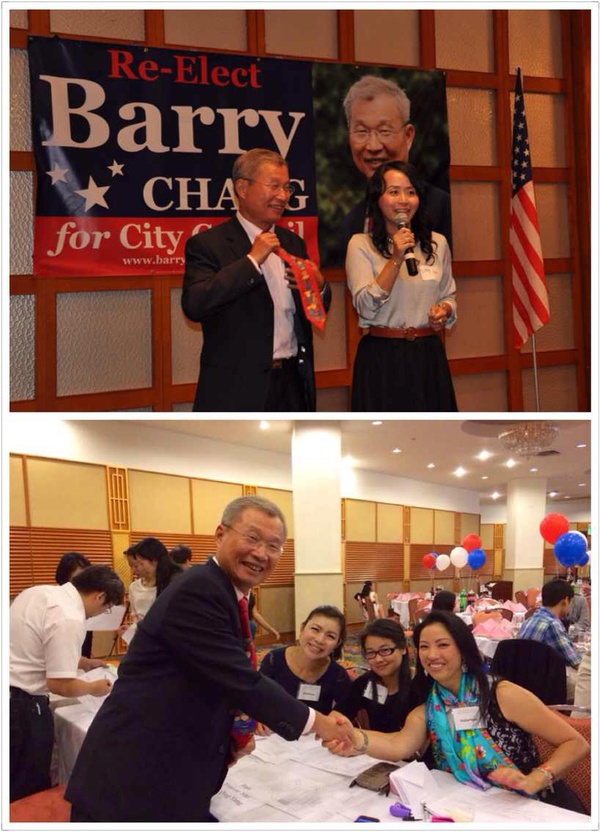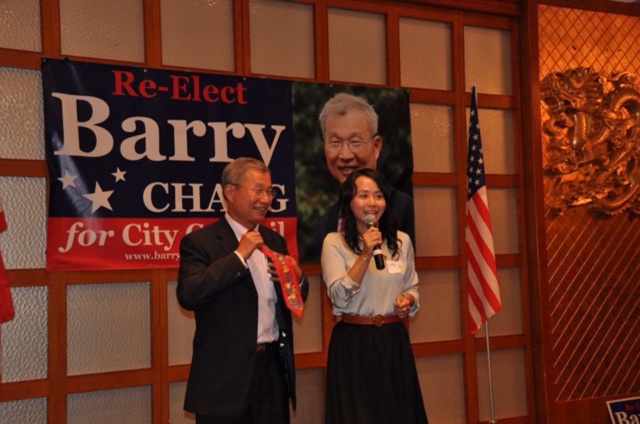 整场筹款会高潮迭起。先是骆家辉等各位政要发表演讲,再是来自UBC的Charles Liu、来自SVCA的Alex Chen和李伟平等社团代表向Barry宣布支持,再是各位候选人一一上台。特别是各位候选人及其支持者们的热情,让现场来宾们耳目一新。竞选Fremont学区委员的邵阳刚一出台,前来捧场的朋友们所发出的喝彩声已经震撼全场,而后他发表的精彩洋溢演讲,更是令现场观众们赞叹。到场发言的年轻一代候选人还有赵嬿、Andy Wang、潘欣欣、吴永建等。