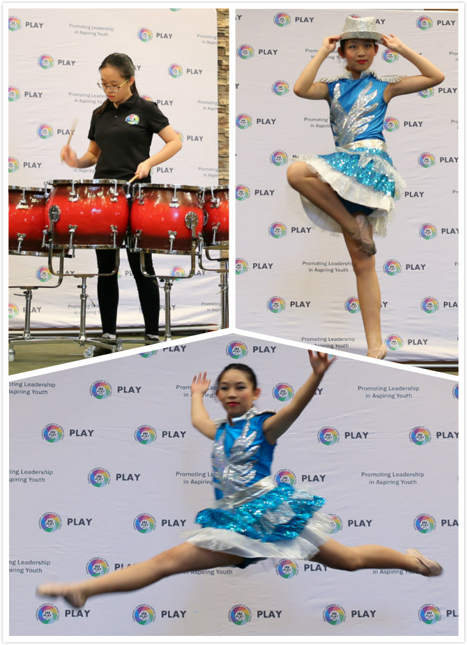 当Cindy Xue的排鼓 Dancing on the drums响起,伴随她两只手飞快的舞动, 直让人觉得两条皎洁的银龙在鼓面上飞舞盘旋。Grace Yi的爵士舞又让人觉得轻松愉快。