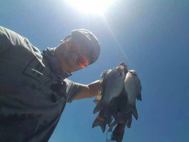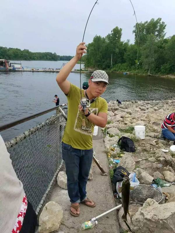 在这里一般用小鱼儿 crappie minow 钓鱼 、 两颗1/8的小铅坠。 和一个大概4/5号的小鱼勾。 最好有轮子、鱼很多。 各种鱼都有、 walleye,