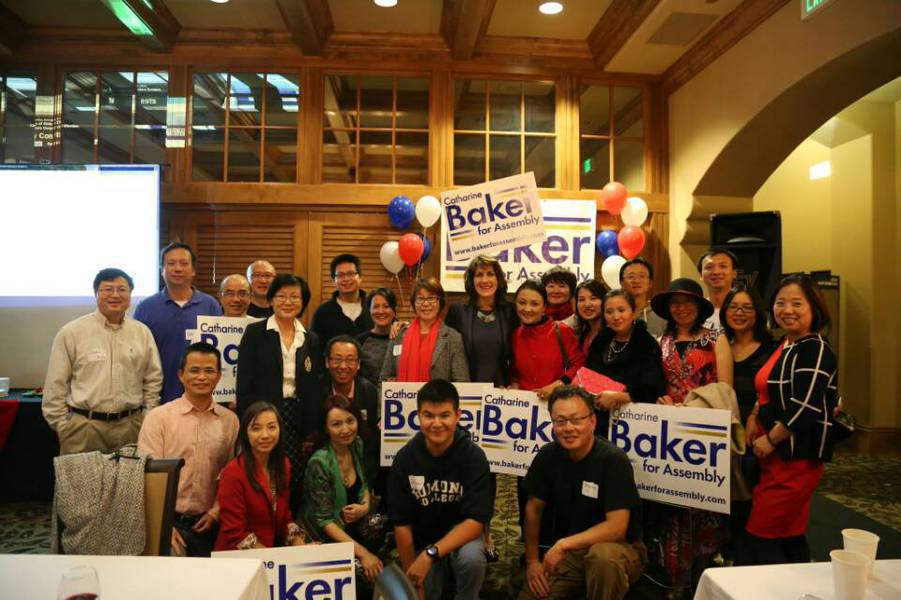 2014年11月4号,美国举行中期选举, 选出部分国会议员及州, 县,市, 学区等各级官员, 美国各地华人积极参政议政, 不少华人或华人支持的候选人当选, 其中令人瞩目的加州众议院第16选区候选人Catharine Baker 在竞选资金只有对手25%的劣势下,仍以52% : 48%获胜,成功当选为加州众议员,为共和党夺下关键一席, 可喜可贺!!
