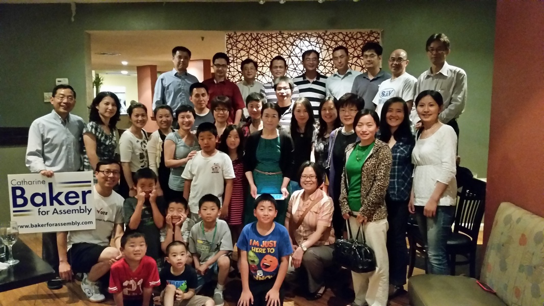 我们忘不了,40多位来自东湾和南湾的华人义工经过一段时间的周密策划,于5月4日在Pleasanton 味道成都餐馆成功举行了午餐筹款会,Baker 和100多位支持者参加, 加州参议院共和党领袖Bob Huff 携夫人Meimei Huff也来为Baker助选, 并高歌一曲"月亮代表我的心", 加州参议院SD10区候选人Peter Kuo在现场拉起了小提琴助兴. 气氛十分活跃. Alameda县共和党主席Sue Caro,Pleasanton市议员 Kathy Narum等贵宾也专程赶来.Baker支持者们踊跃捐款, 共为Baker筹到9000多美元.