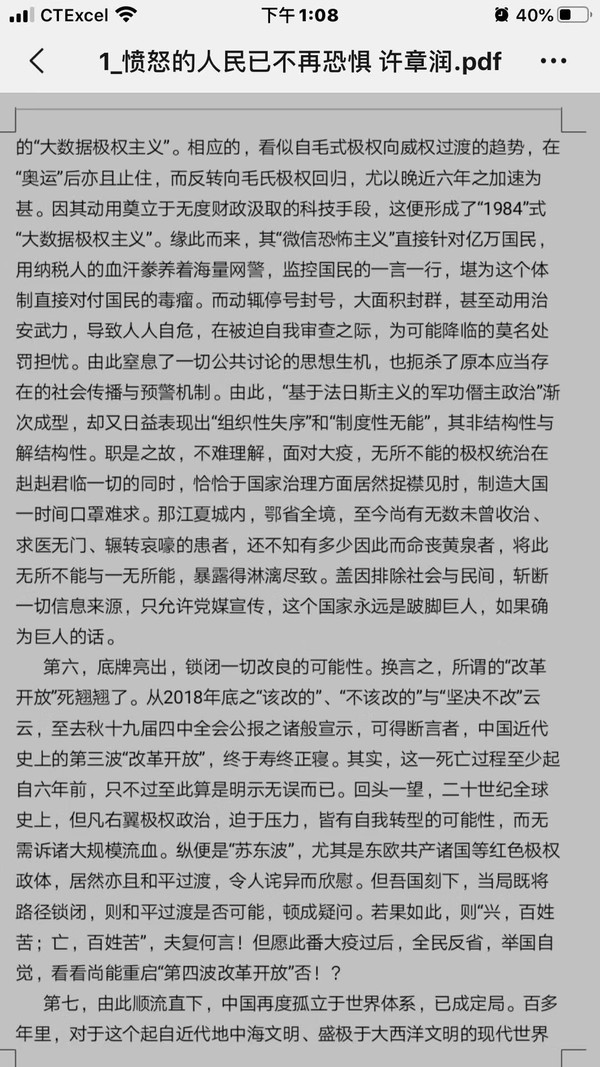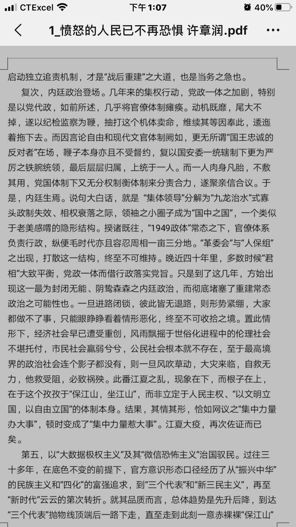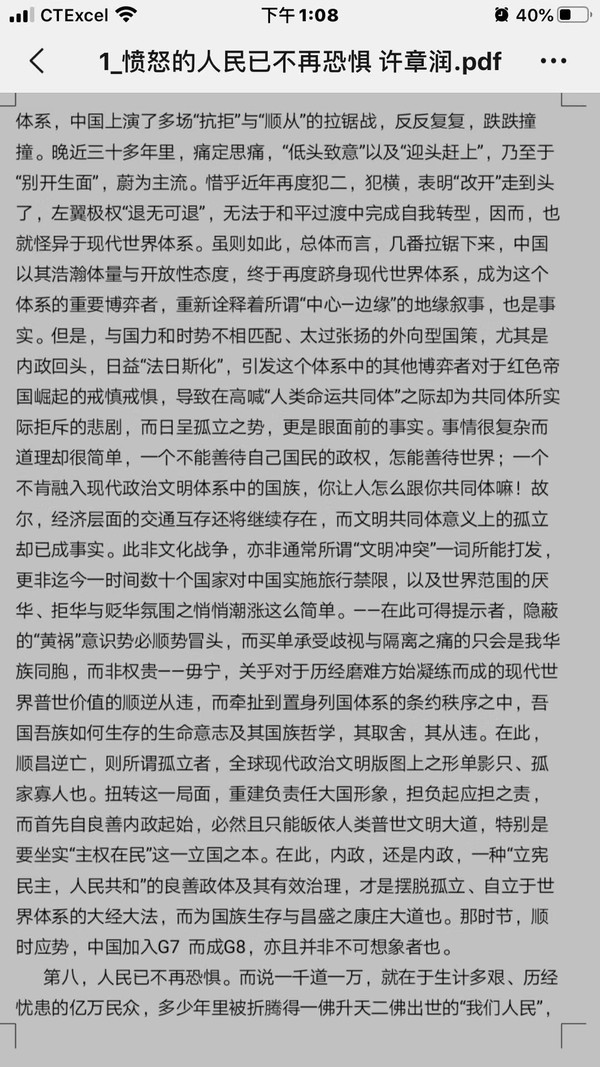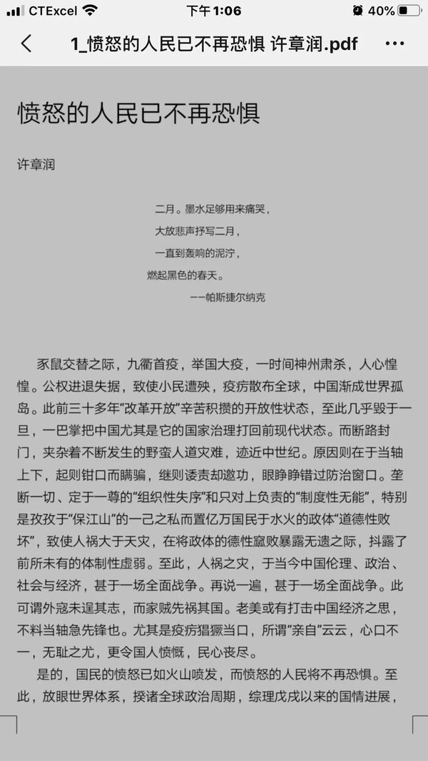 《愤怒的人民已不再恐惧》牧歌-105300 02/13 11387 4.0/1 清华大学法学院许章润教授冒死写下的文字! 醒醒吧,神州大地上的中国同胞们! http://www.weidb.co/p579397 获取作者更多文章 上一页 下一页 1. 《愤怒的人民已不再恐惧》(11387) 2. 《吹哨者》(3140) 3. 《微不足道》(1047) 4. 《微不足道》(814) 5. 《微不足道》(666) 6. 《微不足道》(622) 7. 转发《中国经济危机爆发的根源……》(7954) 8. 我们当下的恐惧和期待(43794) 9. 《我们当下的恐惧和期待》(16506) 10. 《江山》(12173) 11. 《空白》(11646) 12. 《空 白》(9507) 13. 《空白》(8731) 14. 《三月的烟花》(7717) 15. 纽约Q车地铁上的一幕(5868) 16. 《父亲的真相》(4622) 17. 除了坚强别无选择(4682) 18. 相约在母亲节(3887) 19. 《感恩母亲节》(3618) 20. 感恩母亲节(3283) 21. 爱心无远弗届(4289) 22. 几天前,我们微信群收到一则求助信息,长乐航城霞洲村一9岁女孩邹湘颖患急性淋巴白血病,妈妈网上求助!在长乐城中美国同学会会长邹哲武经过确认和倡议下,微信群以接龙报名捐款,捐集善款帮助远在家乡的不幸女孩,在短短几天里,就有上百位同学朋友捐...(5205) 23. 《起初他们》(6432) 24. 《致梁彼得警官》(13548) 25. 《致梁彼得警官》 (3236) 上一页 下一页
