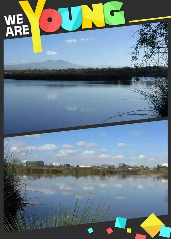 * 雨后略感寒意,开车回家在红灯路口,见润蓝乳云的天空里双虹高挂 !欣喜改车道,停在熟悉的观景小车场,走入OC自然保护区的至高点与湖边。拿出手机,哎呀!彩虹之美轮美奂,湖水云彩之清澈回印,已被摄影群里的燕子师姐最好地定格了 !