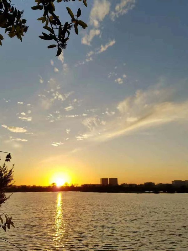 以太阳落日的方向为坐标 , 选择你喜欢的走道或快跑如飞 , 或漫步观景 , 或在小湖大池塘边的木椅上休息静想 , 你都会感恩而快乐着。。。