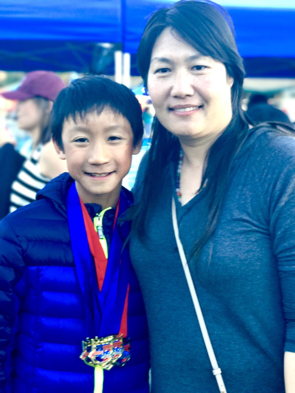 我听见爸爸在对岸嘹亮的呐喊,go Ethan go!我也边录像边尖叫着加油。有音量不够,音高来弥补的赶脚。每次回放任何比赛录像,我都觉得自己的声音实在烦人,听不下去。但是每次观战又忍不住继续呐喊加油。晚节早就不保,算了,控制啥控制啊,我们就是要这种全民总动员的正能量!