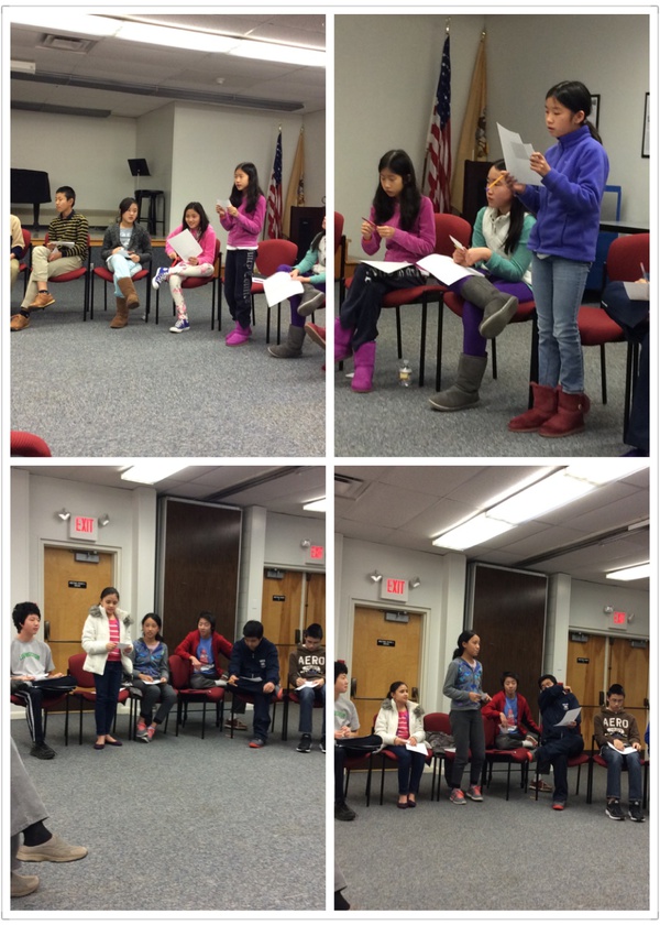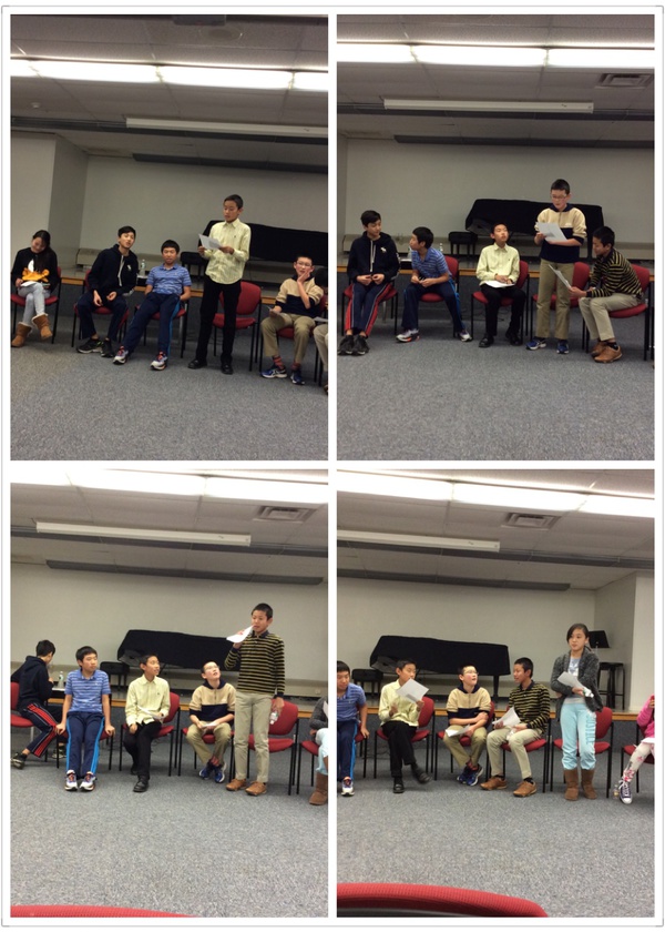 十二月七日,ABC 俱乐部在图书馆成功举办了一场寓教于乐的游戏,吸引了23位6至9年级学生参与;临场一位四年级学生大胆加入,他的演讲使听众印象深刻。这24位学生要即兴准备演讲词,短时间内说服大家使自己survive。现场无论学生还是家长聚焦演讲者各种风格,有的诙谐,有的理智,有的以情感人,有的以理服人,或引来哄堂大笑或勾起频频赞许。