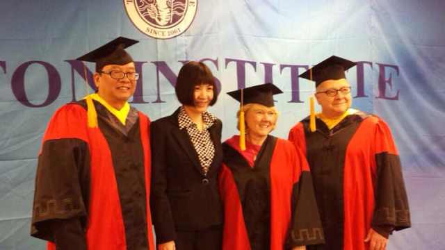 毕业生典礼过程中,教师各司其职默默地忙碌,ling&lin为美国的文化建设做出了贡献,这十几年来投资学校规模发展,从无到有,以实际行动体现一个民族的高素质的能力,我们谢谢他们。