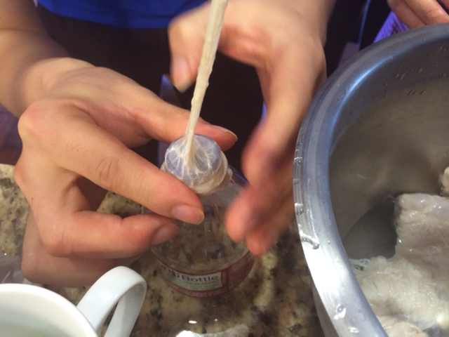 Kitchen aid 有个零部件找不到了,改用喝水塑料瓶灌,稍麻烦但是乐在其中