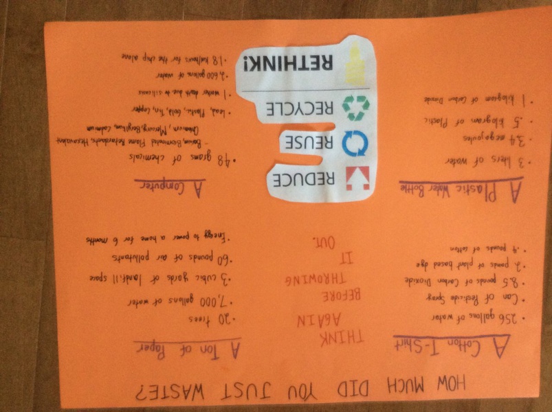 3. 发动孩子们作为“回收帮手”带领低年级学生,记得刚开始一个四年级男孩儿很不屑一顾,跟其他同学指着我说“look at that Chinese lady asking for recycling!” 他的语言如果很敏感的妈妈也许真不爱听,我就走到他的桌子边给他耐心解释,请他做回收督察。RETHINK