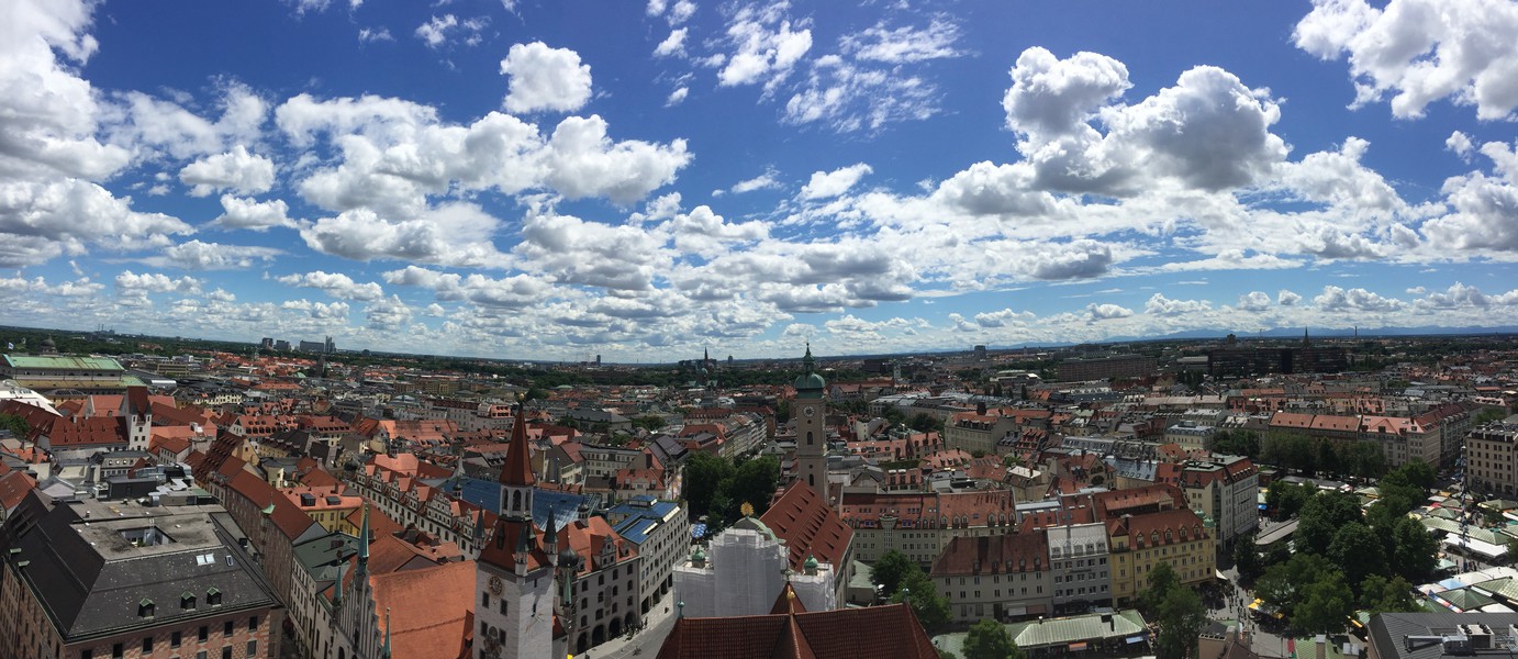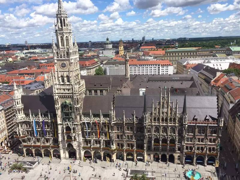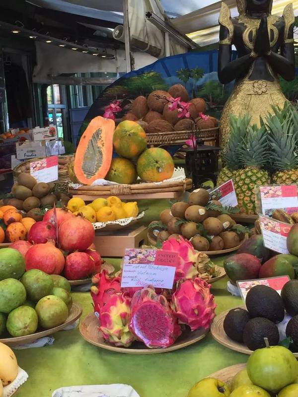 从我们的住处到慕尼黑中心,不到两英里,但是对女儿来说,还是一段艰难的行程。经过昨晚的侦查,先生把车停在市中心的停车楼,然后开始游览。第一站是慕尼黑集市,最开始为圣诞节集市,现在是一年四季都有:花卉,蔬菜,水果,工艺品,果酱奶酪,陈设美观,质量精美,大饱眼福。