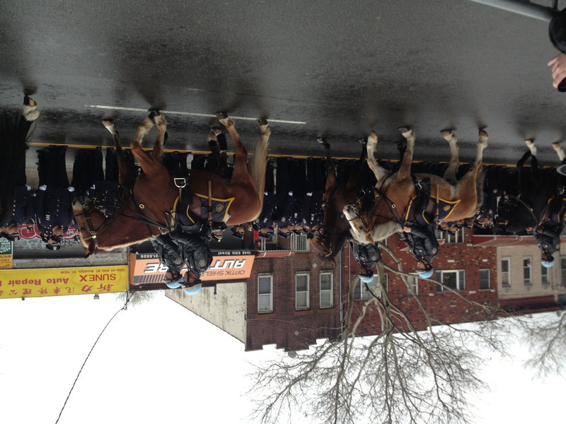 迎潮想把带去的捐款交到家人手中,警员陪我们在funeral home附近等很久无法进入。NYPD community service官员一直耐心协调,值得称赞。等待过程中,警员仔细回答迎潮关于官衔的问题,还指给我俩看哪些是big shots。我询问了关于新移民语言障碍,警察如何在事发现场提供翻译的事项,警员告知程序以及NYPD正在upgrade to a newer system to provide faster translation.