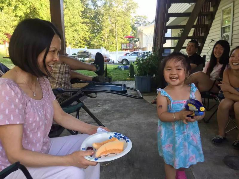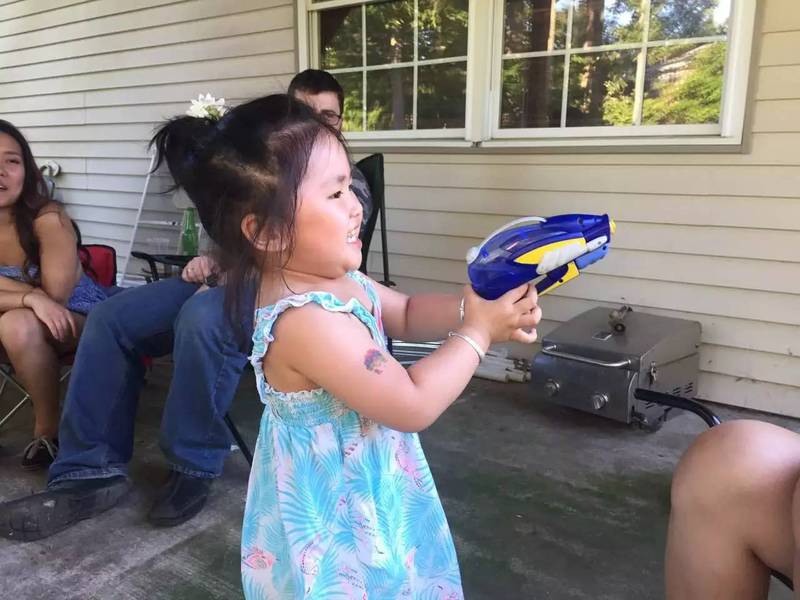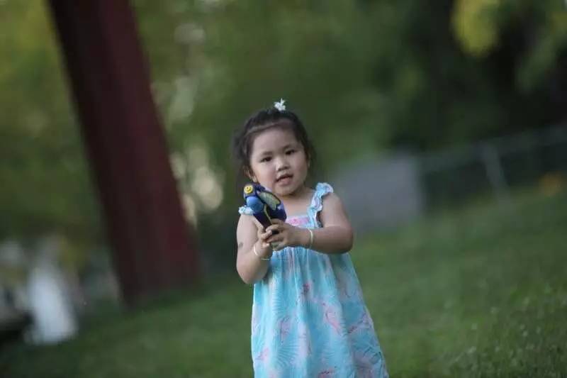 孙女第一次使用水枪