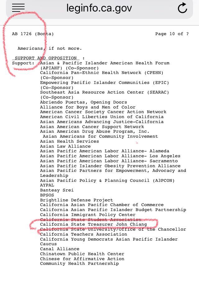 江俊辉旗帜鲜明地支持亚裔细分法AB1726,那么多组織支持足够了,他作为财政部长没有必要关注数据搜集这种立法,更没有必要表态,但他非要把自己名字加上。
